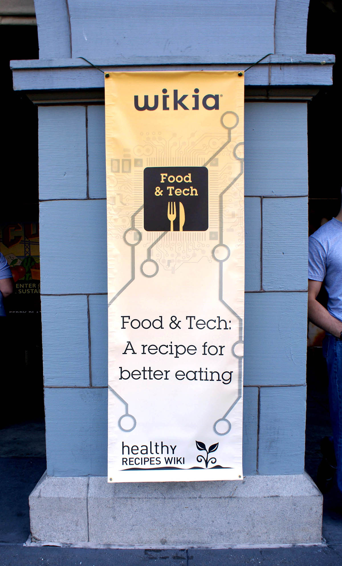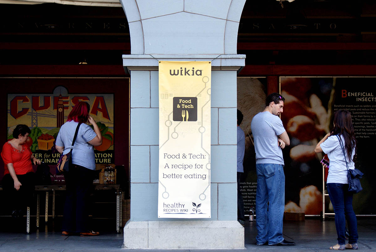 This bit of work began as a postcard and made its way into a banner hanging from the San Francisco Ferry Building on the occasion of Wikia’s Food & Tech event. The logo was a piece of work we put together for the Healthy Recipes team at Wikia a few weeks ago. The event, which took place on Sunday October 10th, saw a handful of local chefs serving up their culinary delights and an esteemed panel discussing technology’s role in shaping the food we eat. It always puts a smile on my face to see my work placed in the context of tangible moments like these.